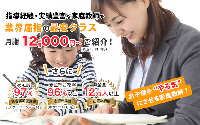 質の高い家庭教師を 安心・納得の低料金で