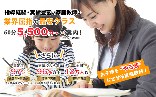 「厳選された家庭教師」「担当指導員のバックアップ」で、お子様の学習をしっかりと支えます。勉強の正しいやり方を指導し、自主学習する土台を作ることで、学力が向上していきます。