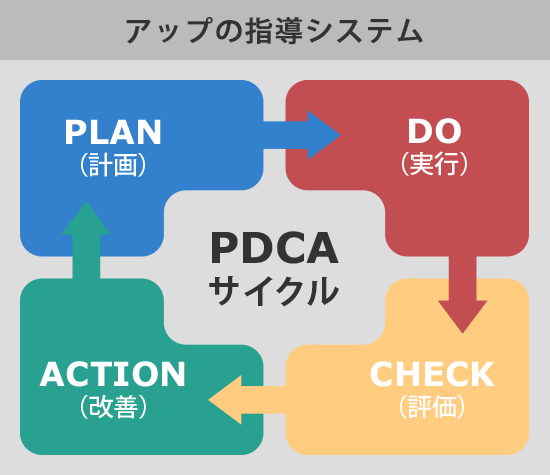 アップでは、ビジネスでも活用される「PDCAサイクル」を学習指導の基本としています。